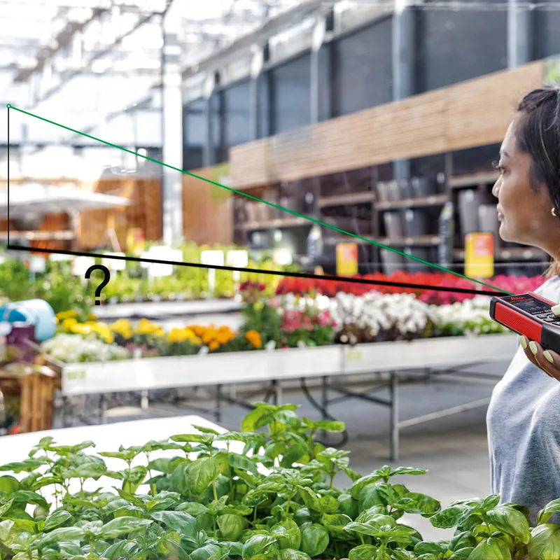 Modo Horizontal SmartGracias a la combinación de las mediciones de distancia e inclinación, es posible determinar la distancia horizontal fácilmente y con precisión absoluta, incluso a través de largas distancias u obstáculos. |