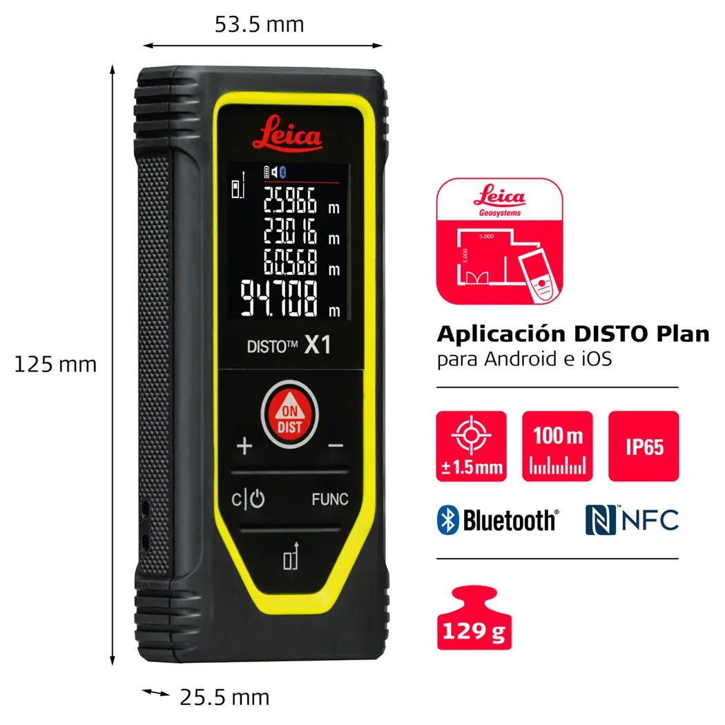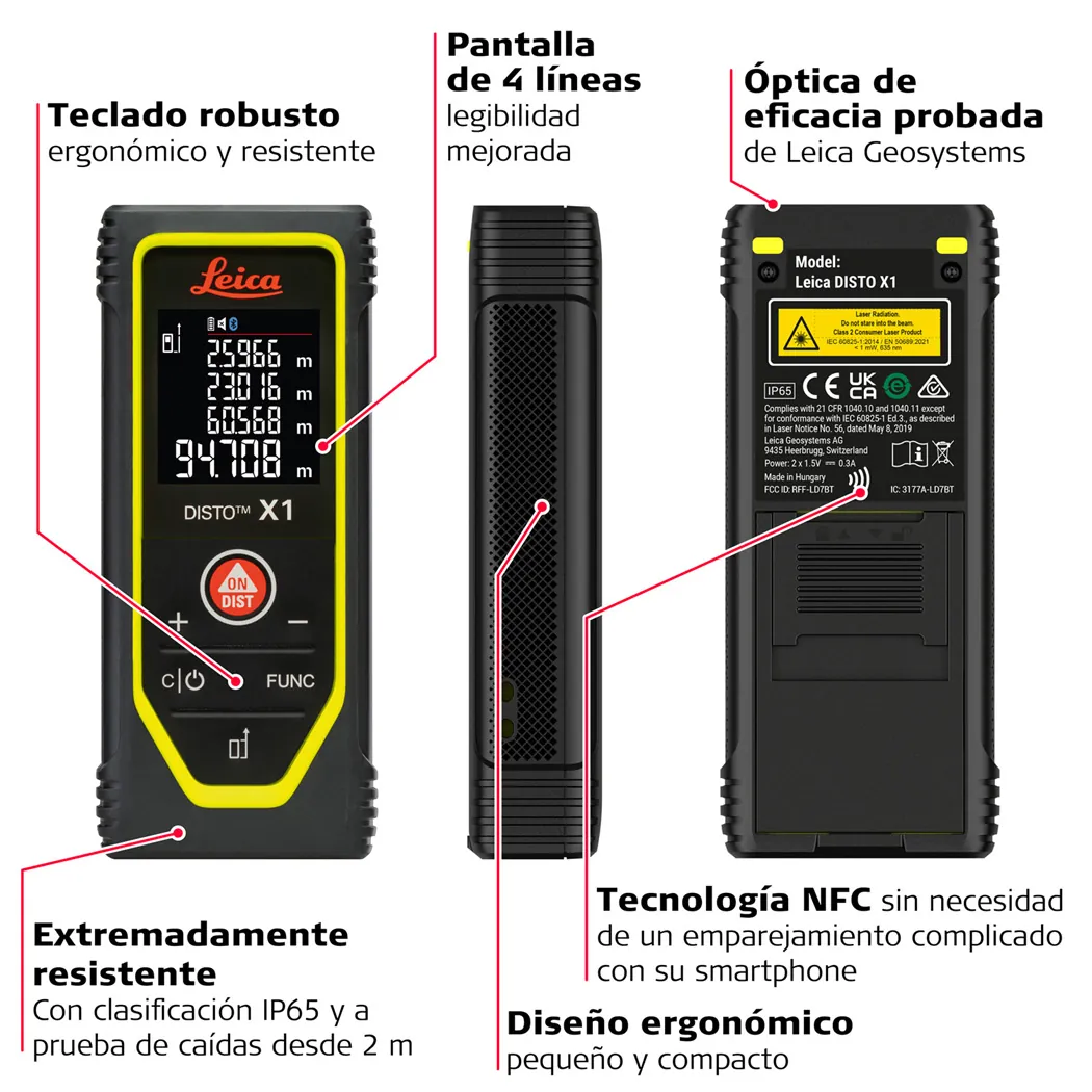 El Leica DISTO X1 es un distanciómetro láser robusto y fiable, perfecto para mediciones sencillas de distancias, superficies y volúmenes en obras de construcción difíciles y polvorientas en interiores.