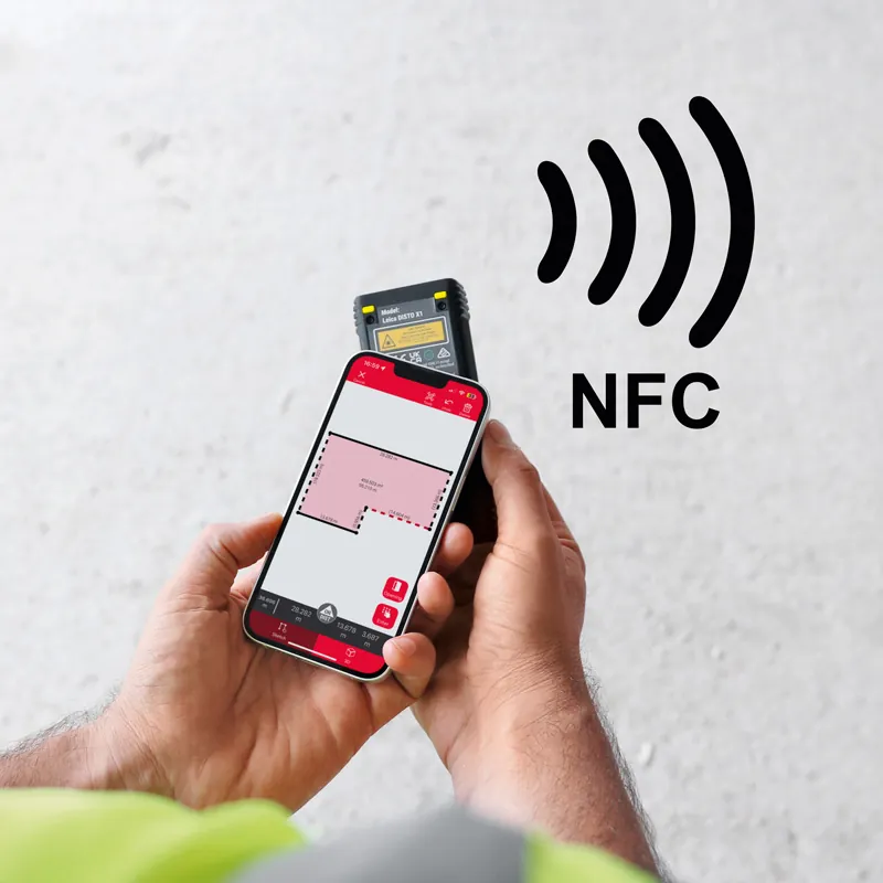 Conectividad sencilla con NFCEl Leica DISTO X1 se conecta fácilmente a la aplicación DISTO Plan a través de NFC, lo que hace innecesario el emparejamiento. Sitúe simplemente el dispositivo cerca de su smartphone para transferir los datos al instante, optimizando así su flujo de trabajo. |